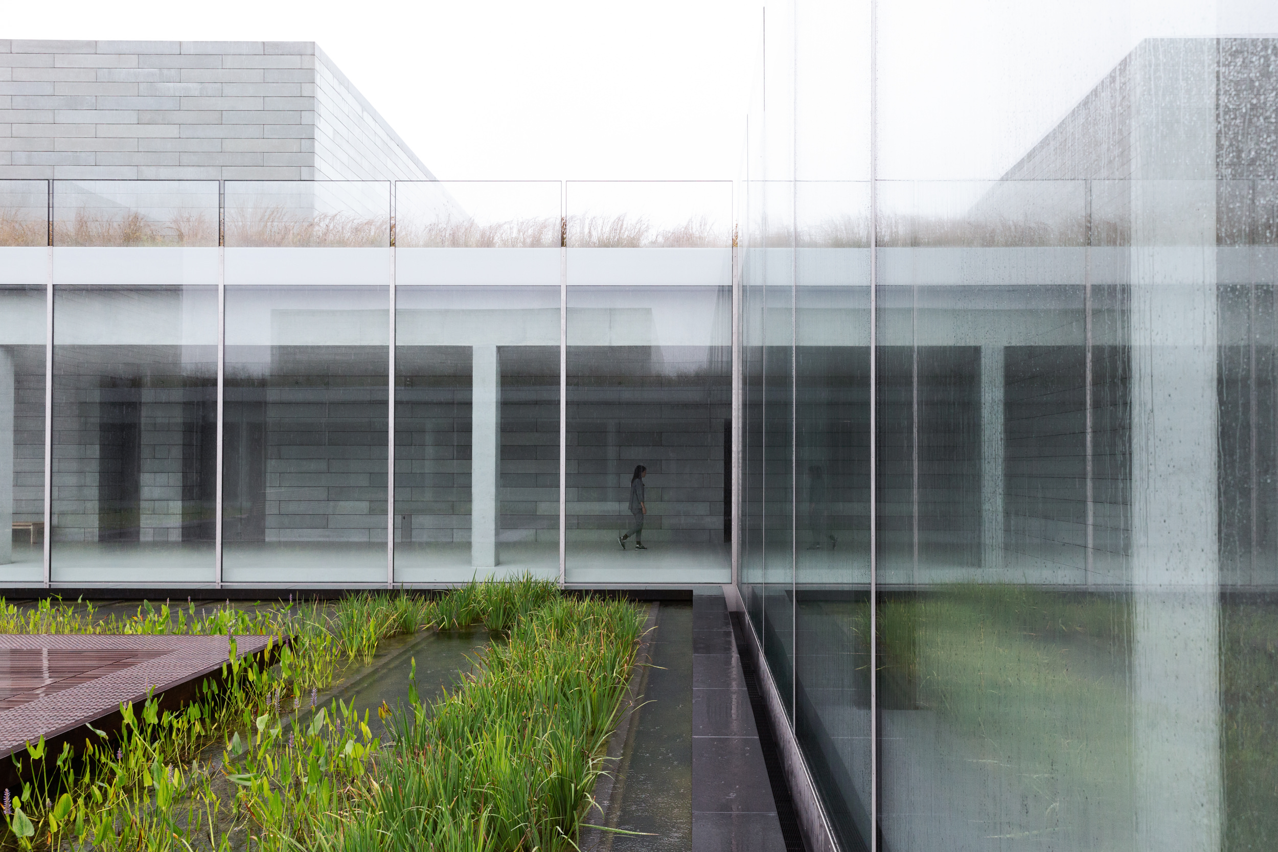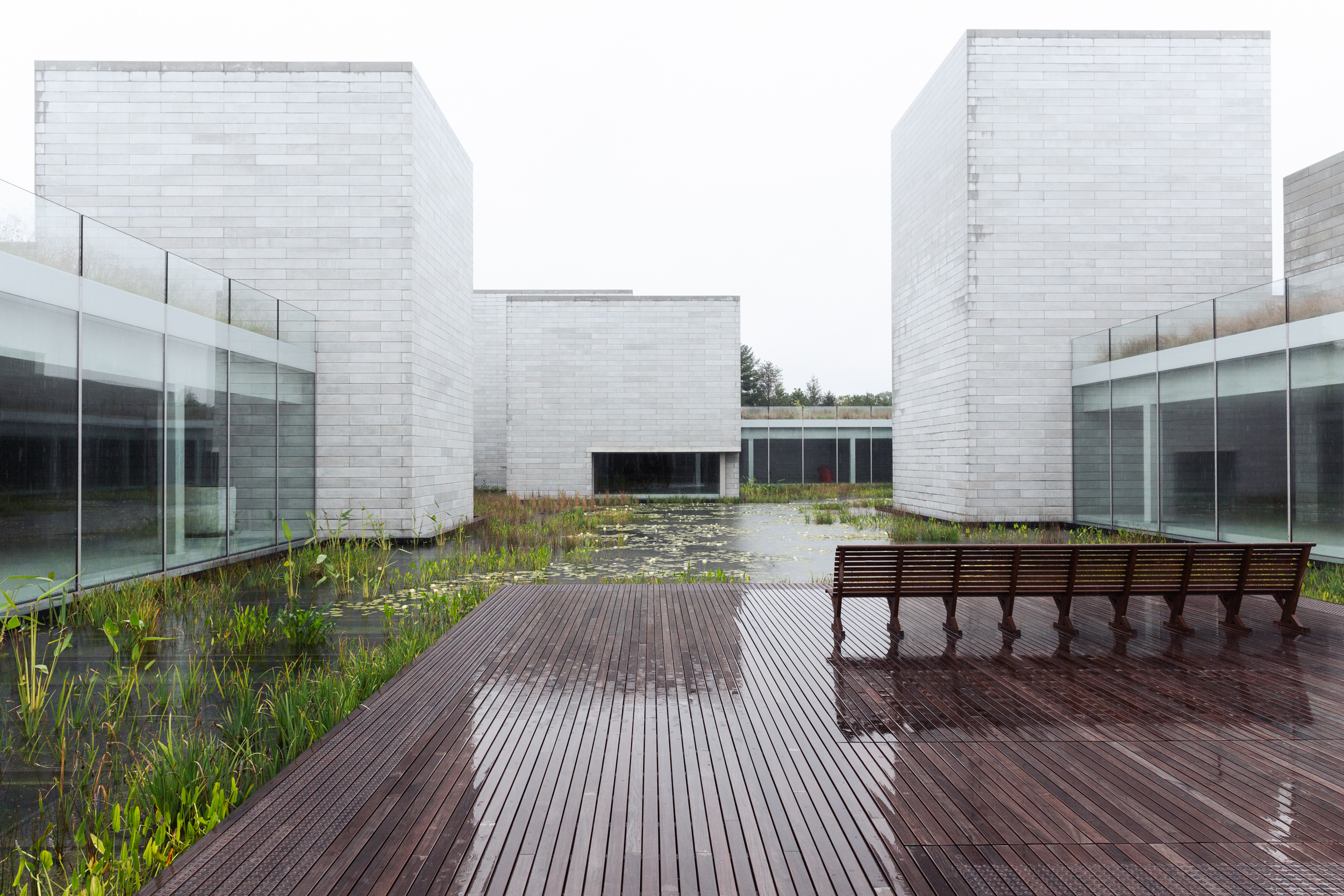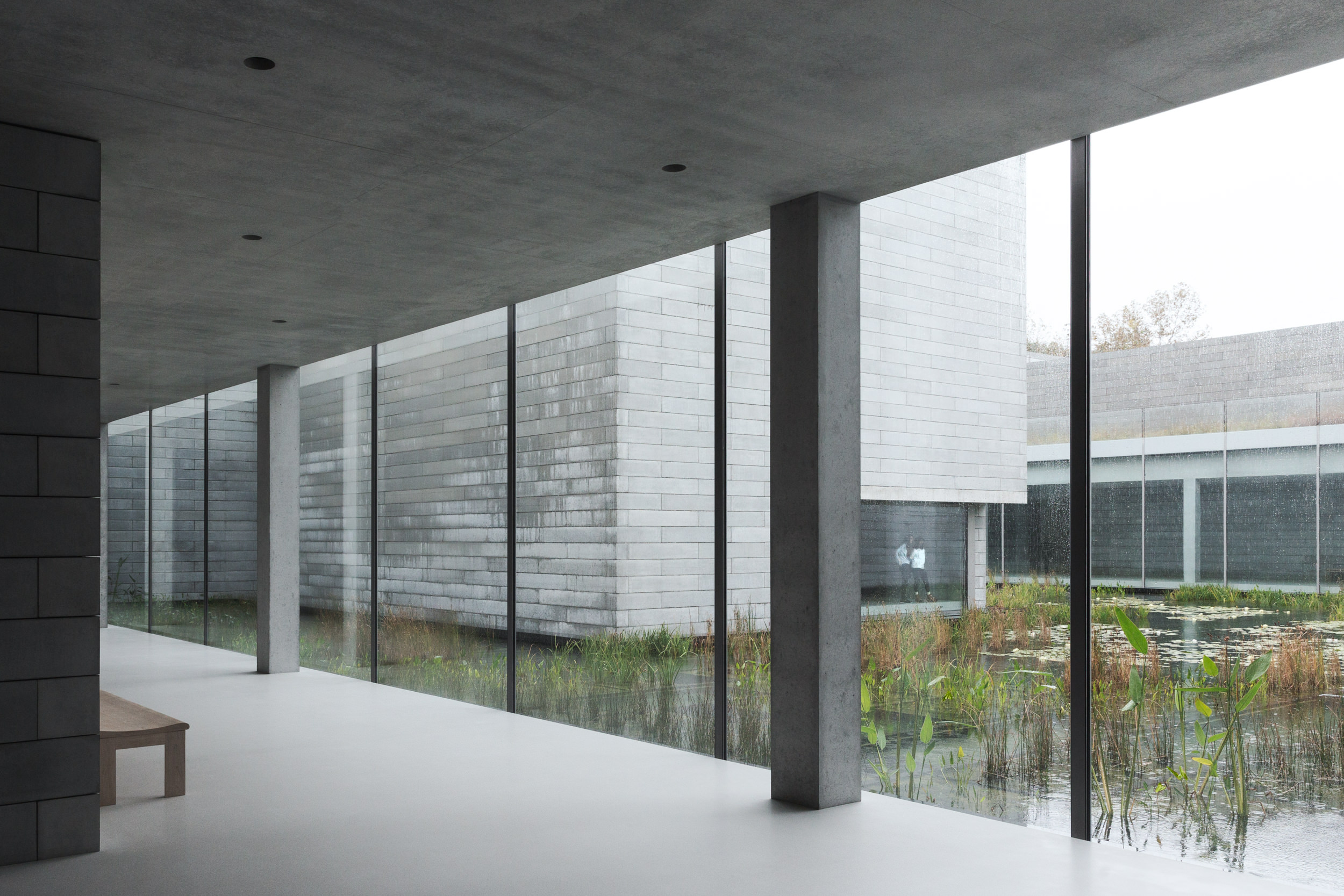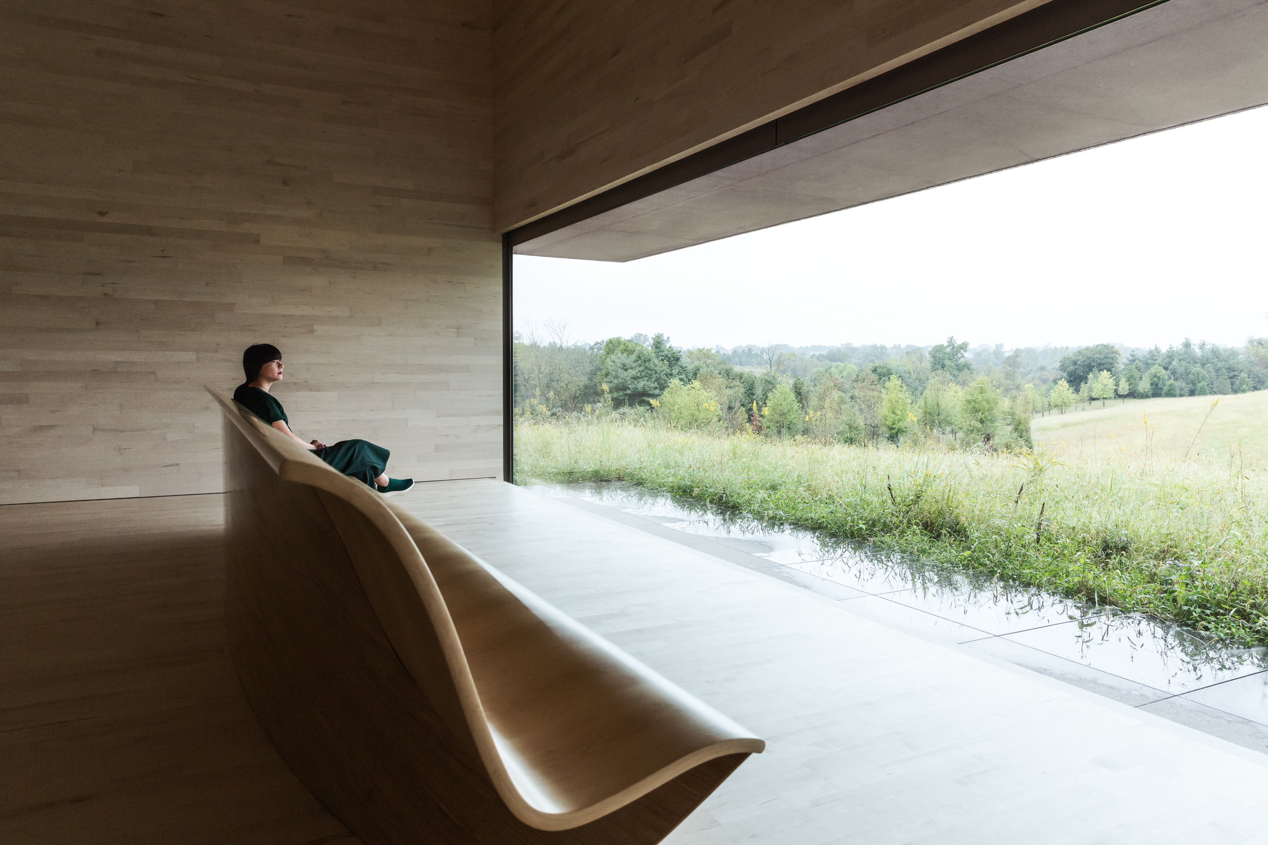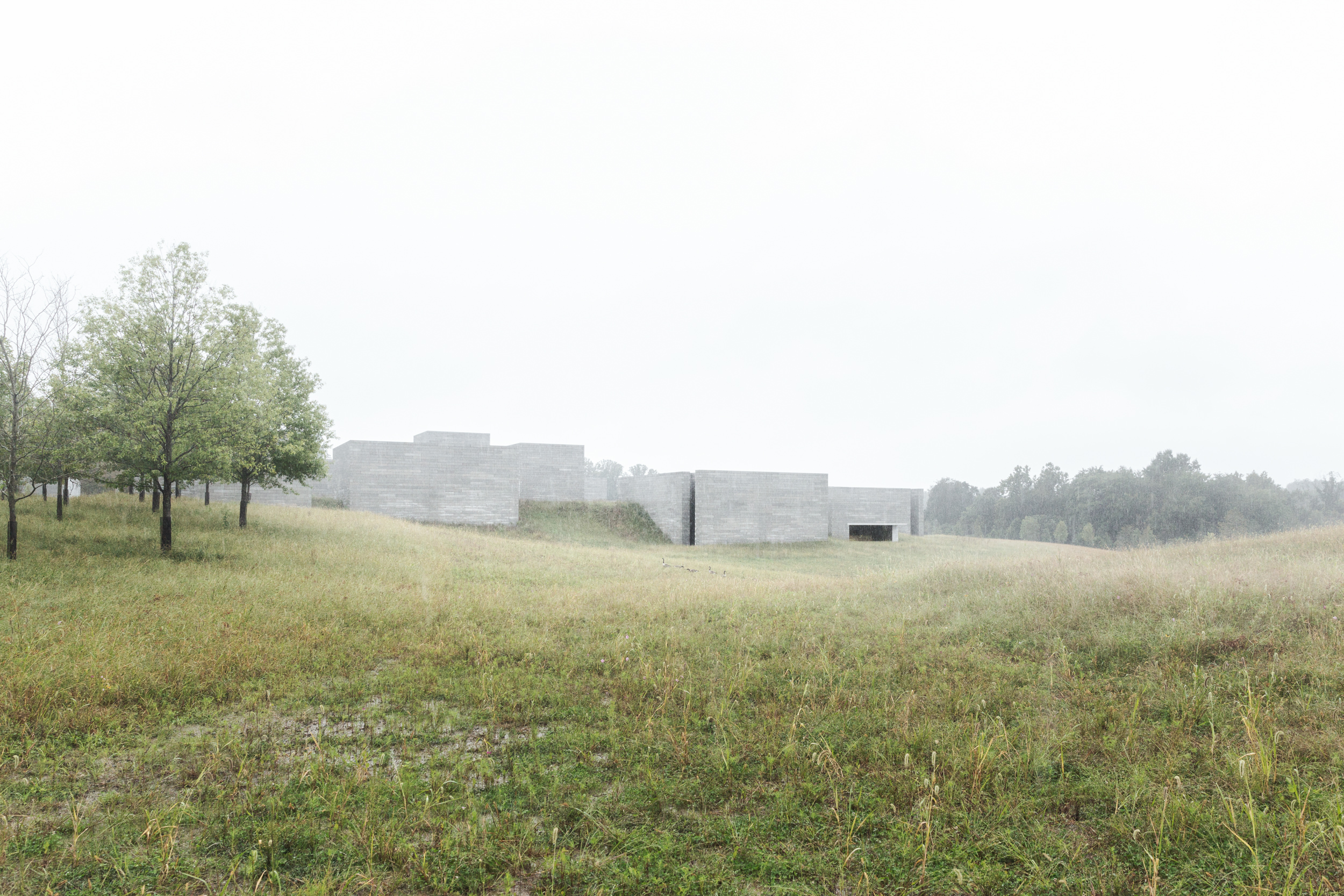 The monolithic additions that make up Thomas Phifer and Partner's in addition to the private art foundation appear austere and isolated in the inclement weather. The pack of structures slowly reveal themselves upon approach, nestled in the landscape. Upon entering the relationship is inverted: the choreographed chaos of nature by now confined to glimpses allowed by a series of carefully calibrated apertures in the stoic volumes. The regularity and precision of rectilinear shapes stands in sharp contrast to PLP Landscape Architecture's design, but provides the perfect module from which to fashion the pavilions, each unique in its size and purpose-built to showcase the art housed within. Some of the art is site-specific, commissioned in conjunction with the new addition, but the entirety the addition is art-specific, a reaction to the art it accommodates.